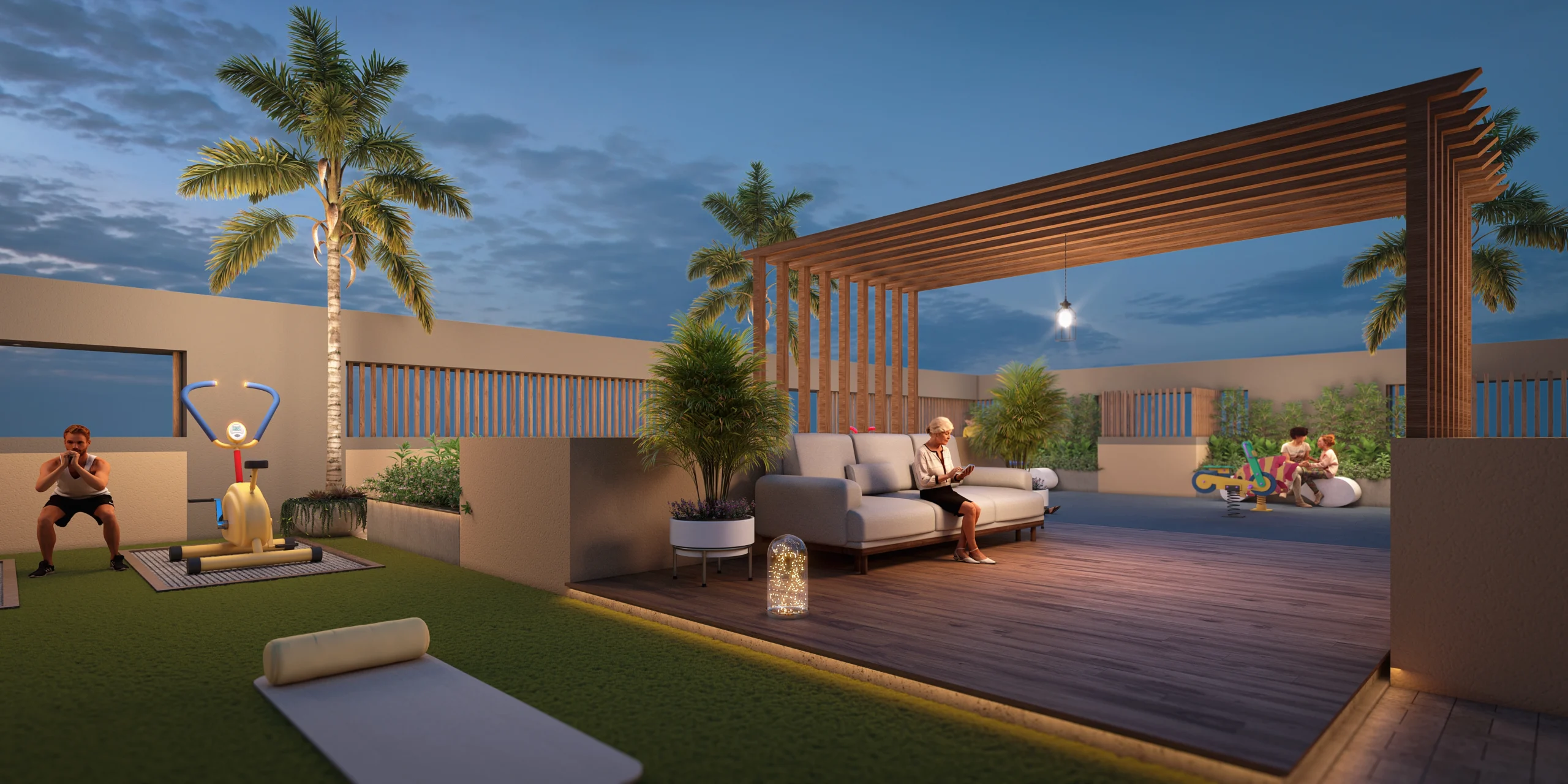 A prestigious address featuring a rooftop gym, yoga deck, and celebration area.