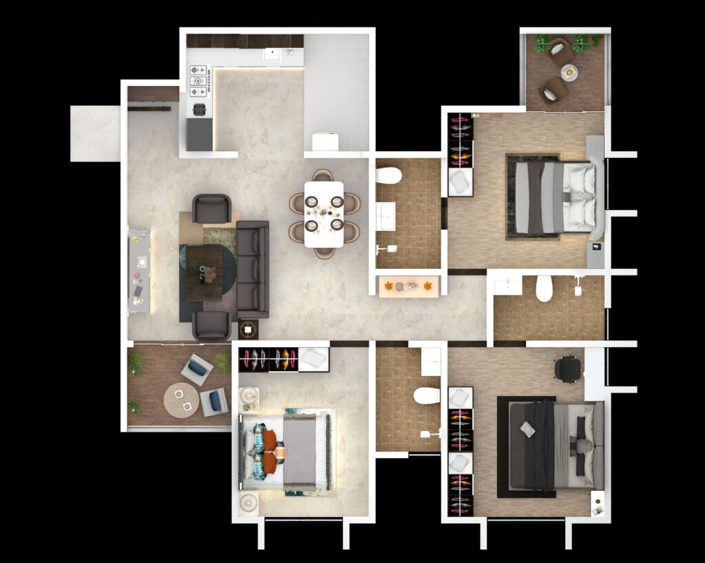 Luxurious 1043 sq. ft. flats designed for modern families.